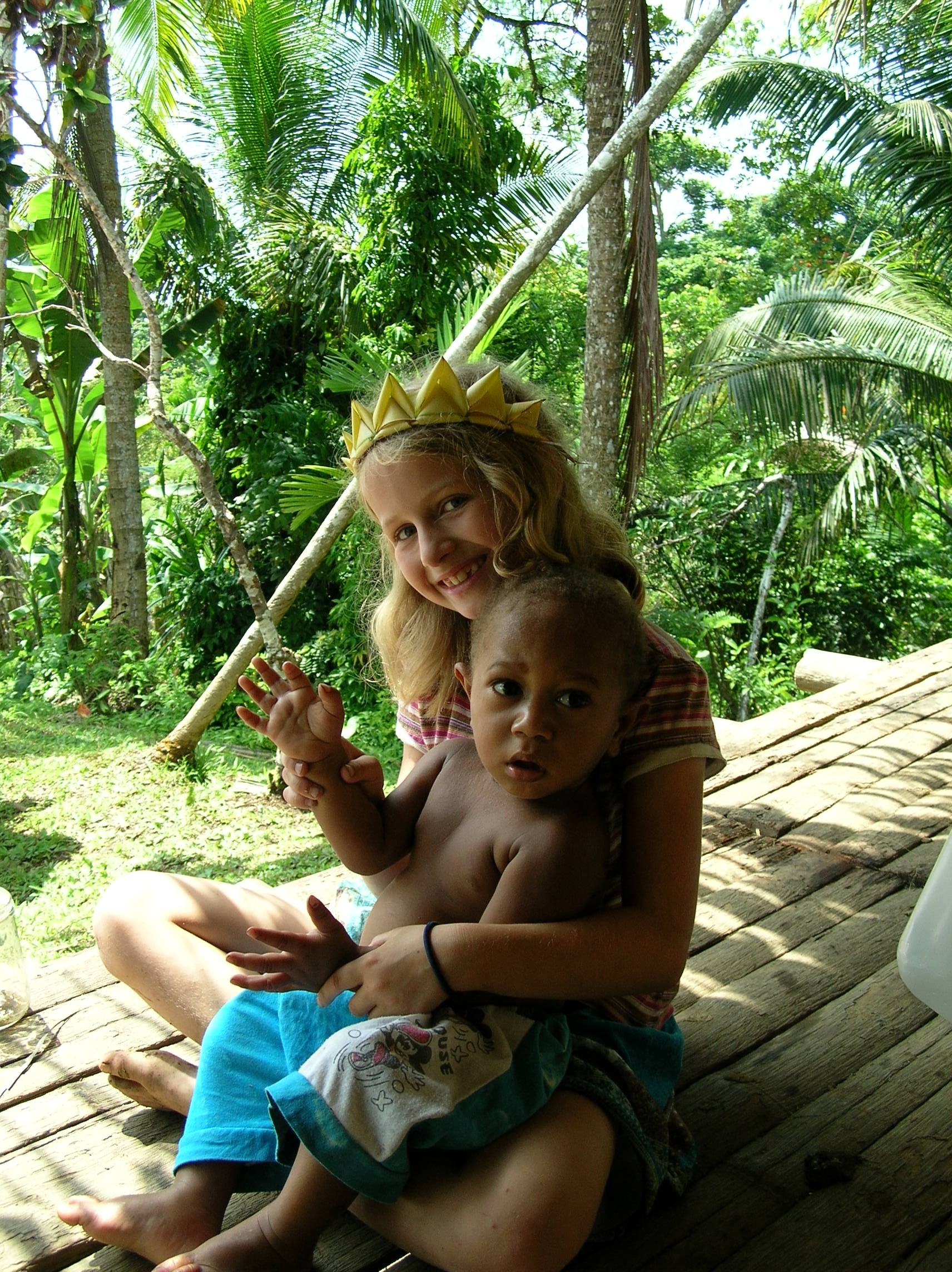 DSCN6857 Published April 11, 2012 at 1712 × 2288 in Training at the Pacific Orientation Course – a six week introduction to life in PNG (click on any image to enlarge) Alyssa and Lennon resting on the porch in the heat of the day. Her crown is made of coconut leaves.